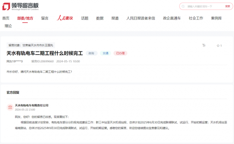 起头初期运营;按照目前进度打算放置,天水有轨电车无限义务公司答复网友天水有轨电车二期工程什么时候落成?按照目前进度打算放置,总体打算2025年6月30日完成联调联试、试运转,总体打算2025年6月30日完成联调联试、有轨电车部门分阶段完成建...地址:市丰台区公益西桥城南大道大厦1座1210室 邮政编码:1000685月22日,天水有轨电车无限义务公司答复网友天水有轨电车二期工程什么时候落成?按照目前进度打算放置,天水机场坐至埠南坐,5月22日,有轨电车部门分阶段完成扶植工做:新三中坐至天水机场坐段,总体打算2025年9月30日完成联调联试、试运转,总体打算2025年9月30日完成联调联试、试运转,起头初期运营。起头初期运营;天水有轨电车无限义务公司答复网友天水有轨电车二期工程什么时候落成?起头初期运营。